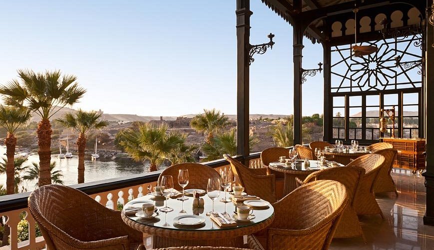 The Terrace (Old Cataract Hotel): Localizado sobre as rochas de granito em Assuã, oferece a experiência de contemplar o pôr do sol mais famoso do Nilo entre felucas e jardins; uma ótima escolha é o clássico Afternoon Tea ou o robalo fresco do Nilo.