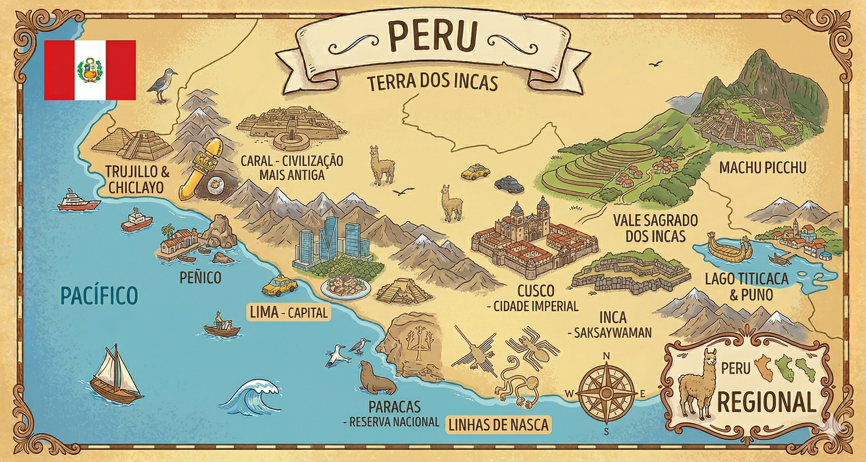 Seguro Viagem: Item Indispensável: Embora não seja uma exigência legal para entrar no país, o seguro viagem é fundamental no Peru. Devido às variações de altitude (o famoso soroche) e às trilhas em terrenos acidentados, contar com uma assistência médica de qualidade garante que qualquer imprevisto seja resolvido rapidamente sem custos astronômicos.